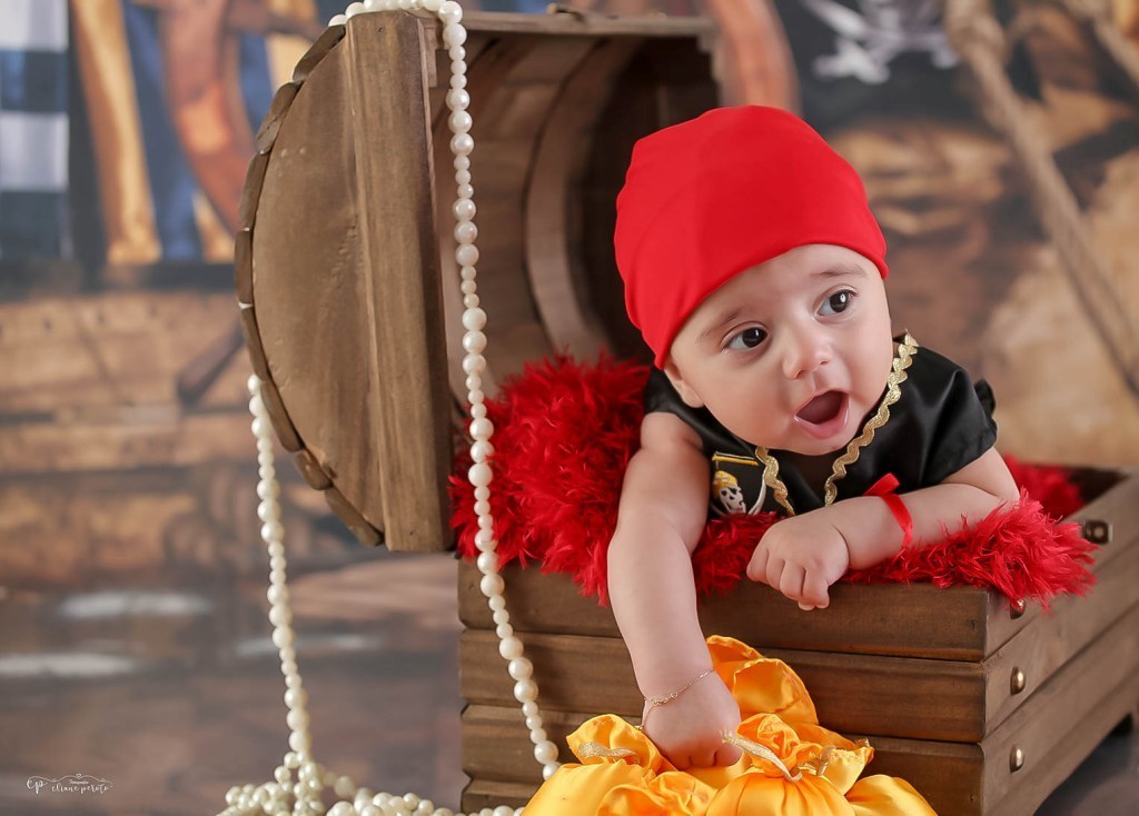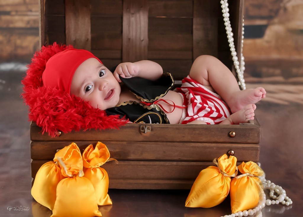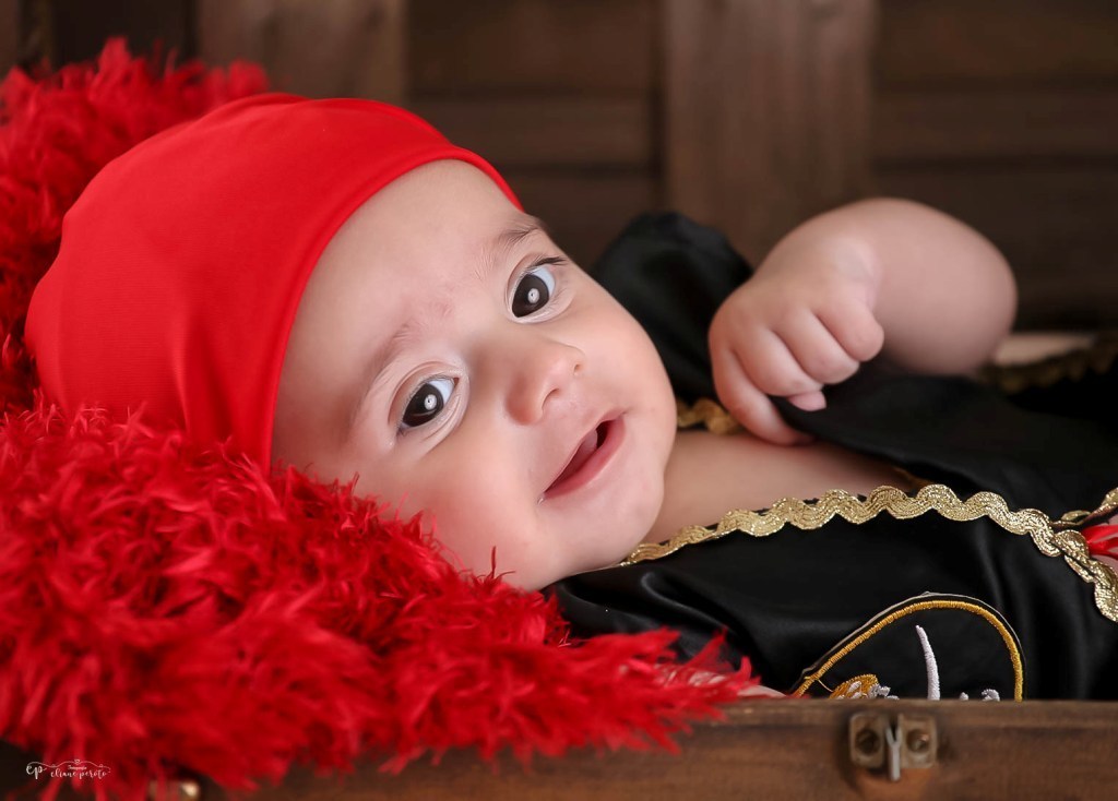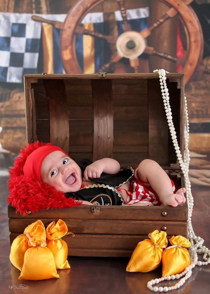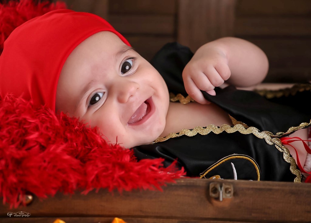 Que ele logo soltou sorrisos e ficou um piratinha muito sapeca.