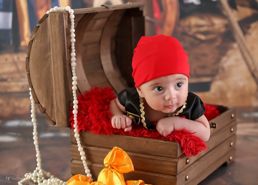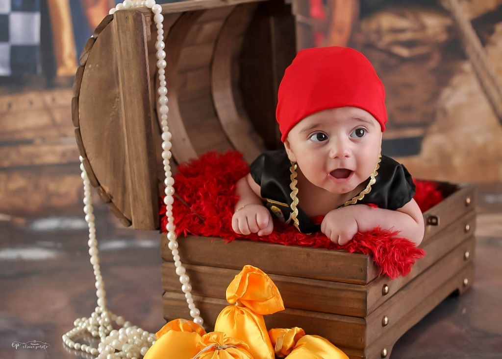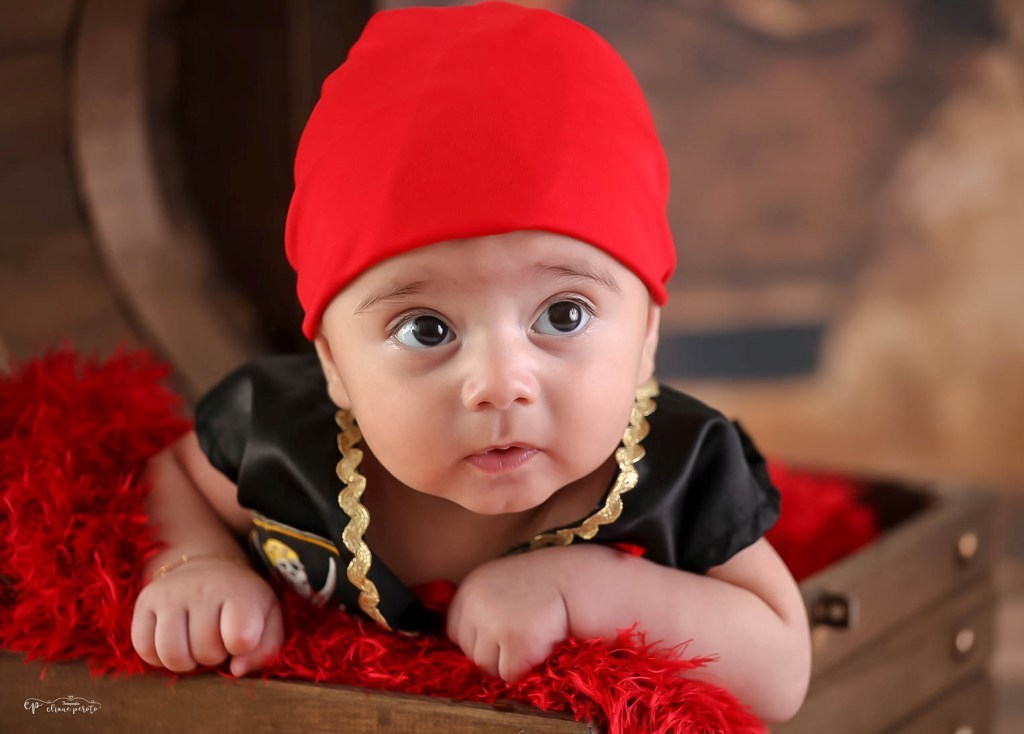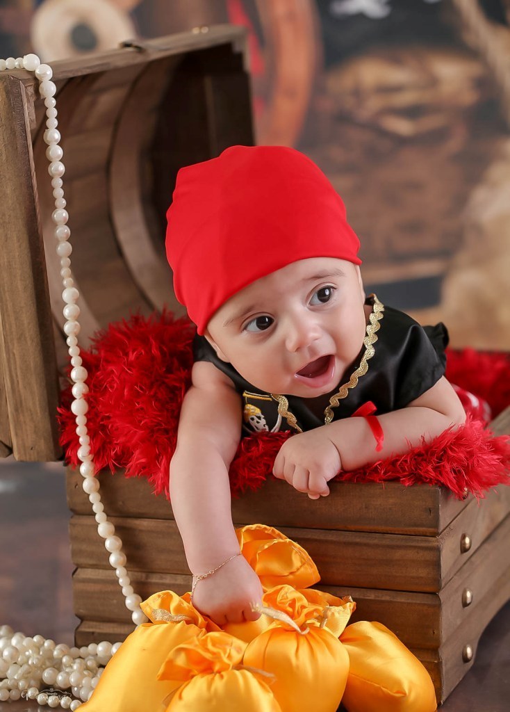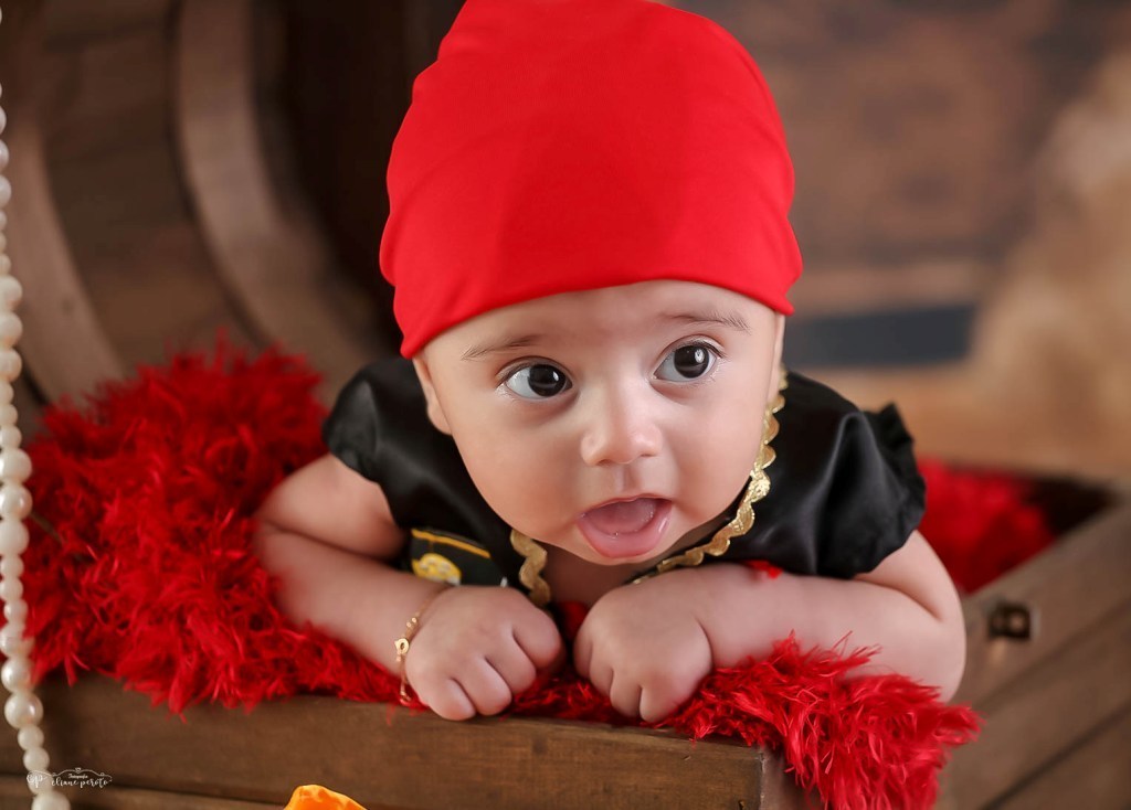 Que ele logo soltou sorrisos e ficou um piratinha muito sapeca.