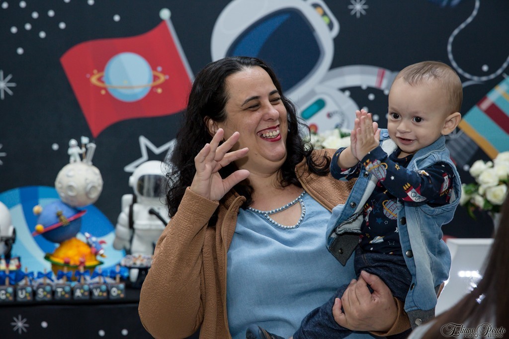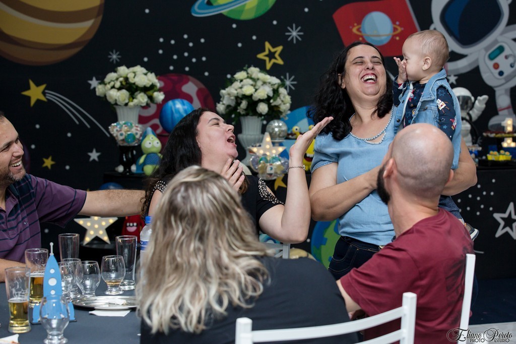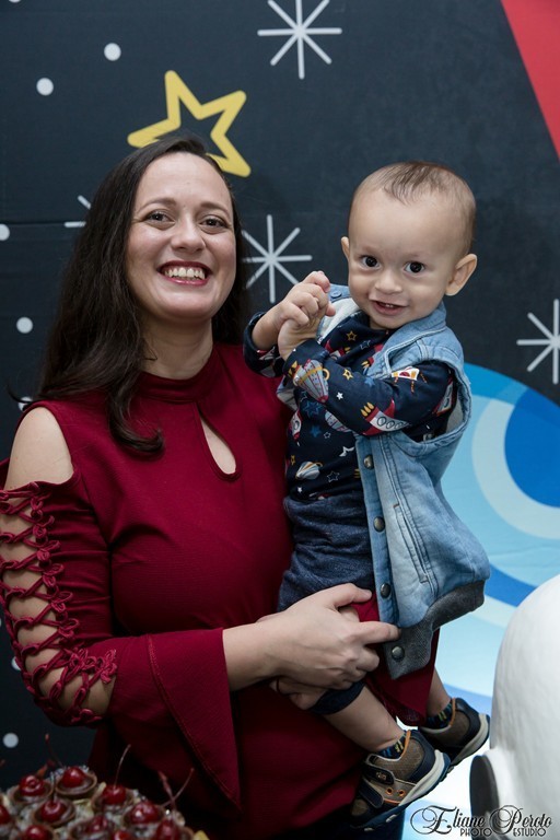Papai, mamãe, o irmão Heitor e todos os familiares puderam saborear um delicioso buffet de Silvia Fest, e se divertir com os brinquedos oferecidos pelo salão.