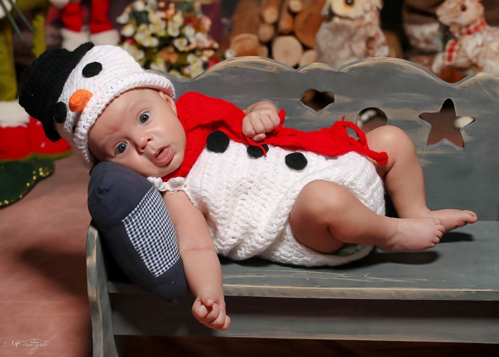 O pequeno Gui se transformou num pequenino boneco de neve.
