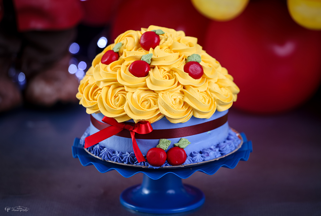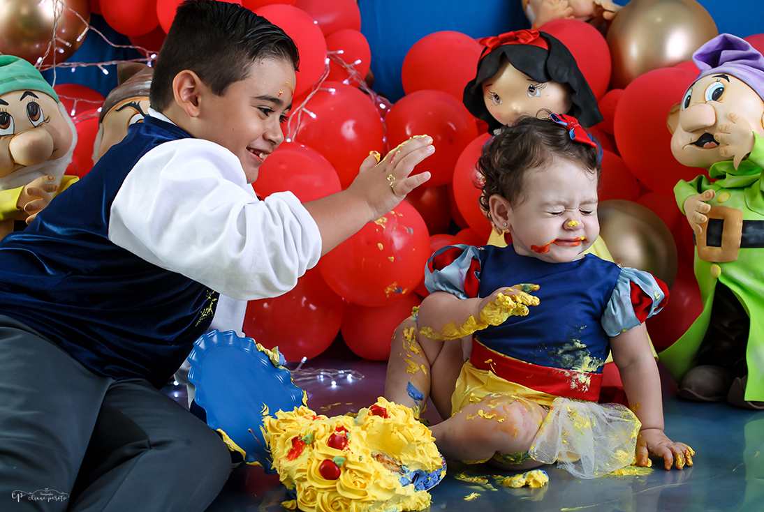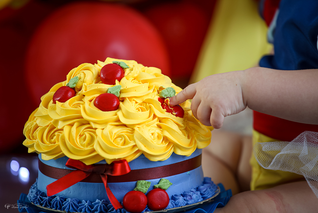 Delicioso e divertido smash the cake - Branca de Neve